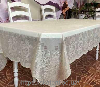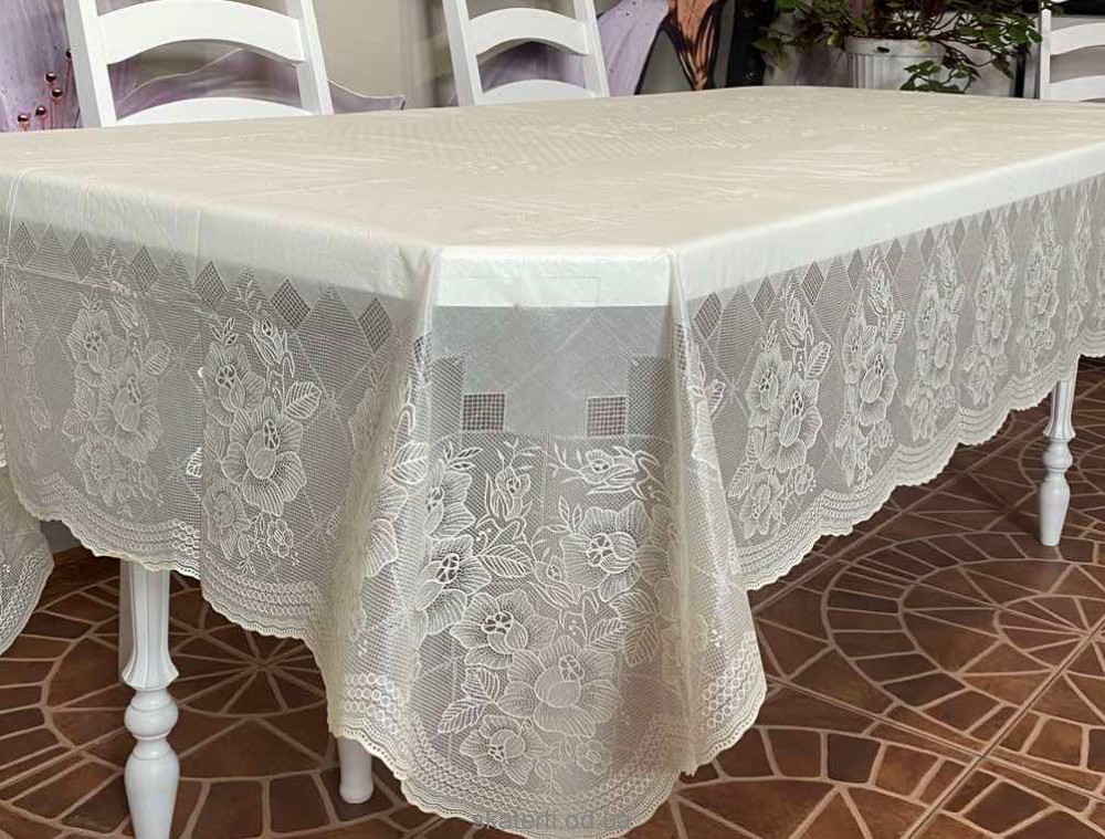 Практичная и изящная скатерть молочного цвета из рельефного винила, размером 150х225 см (на обеденный стол в разложенном виде), будет лучшим защитником столовой мебели. Придаст вид праздничного настроения, и своими преимуществами по уходу сохранит Ваше время. Виниловая скатерть хорошо ложится на стол, не скользит и удобна в эксплуатации.